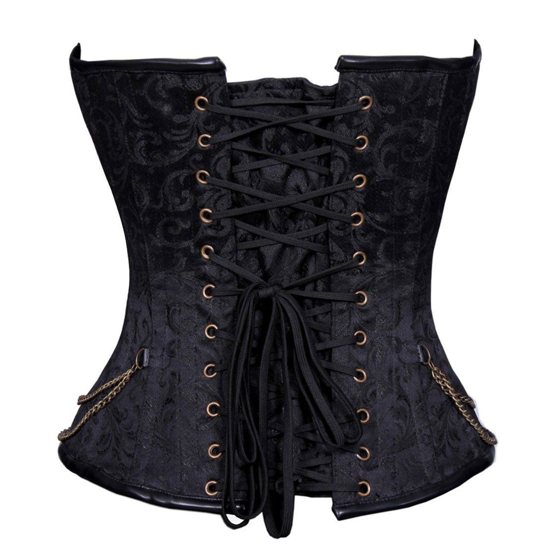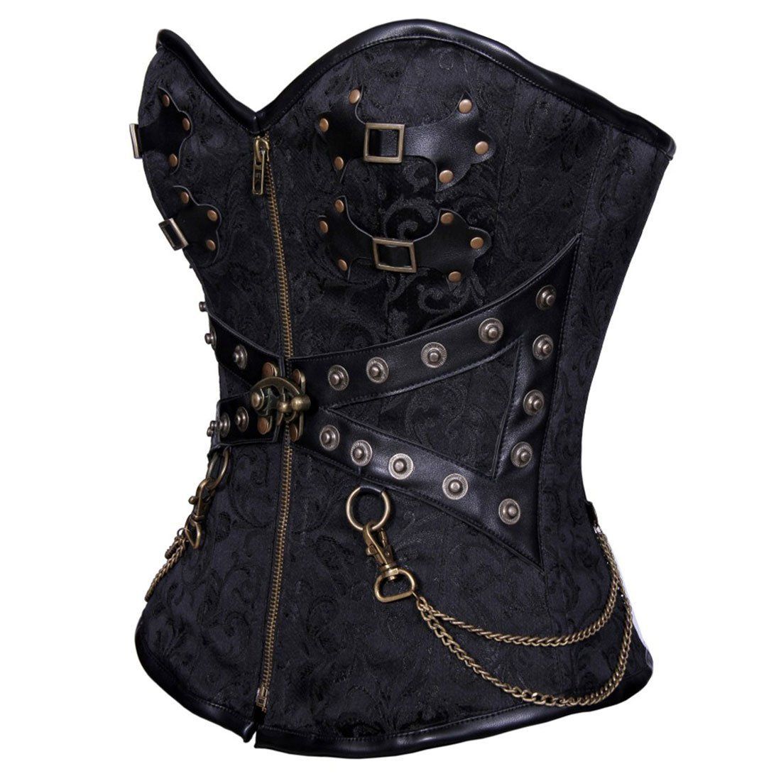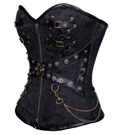 Overbust corset made of Brocade stylize with buckle belt and lined with cotton and steel bones inside.