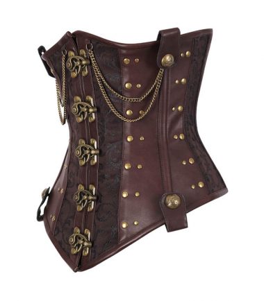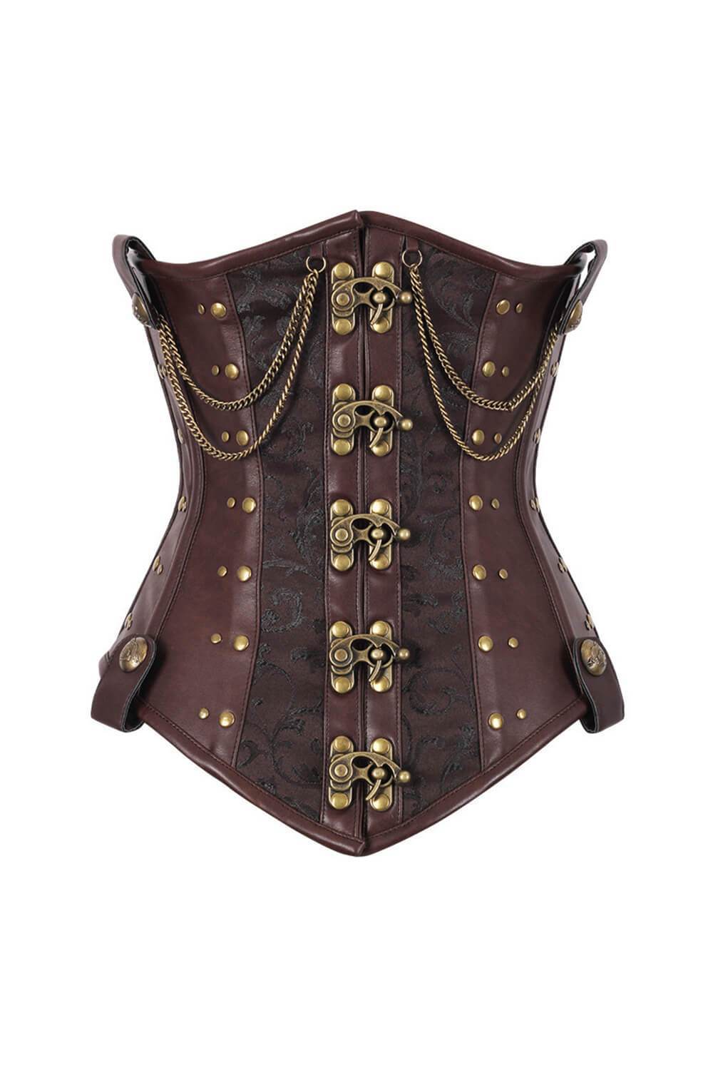 Underbust Steampunk 03 layered Corset made of Brocade and Faux Leather and lined with Cotton inner material Steel Bones.