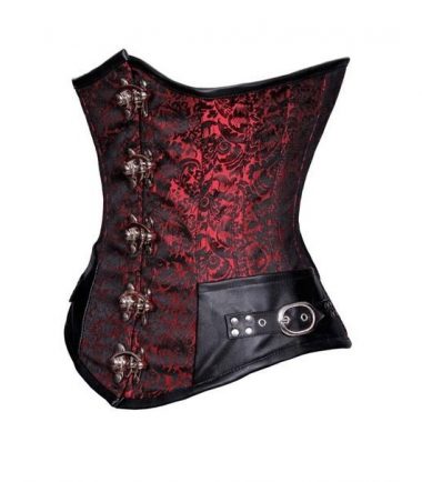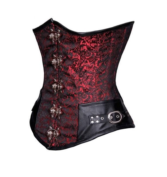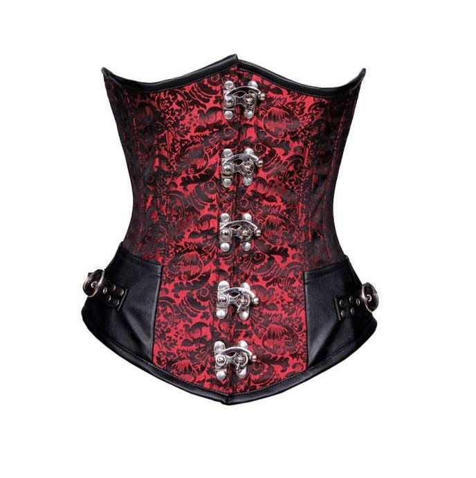 Steampunk style underbust corset made of brocade and clasps buckles on sides, lined with cotton and steel bones inside.