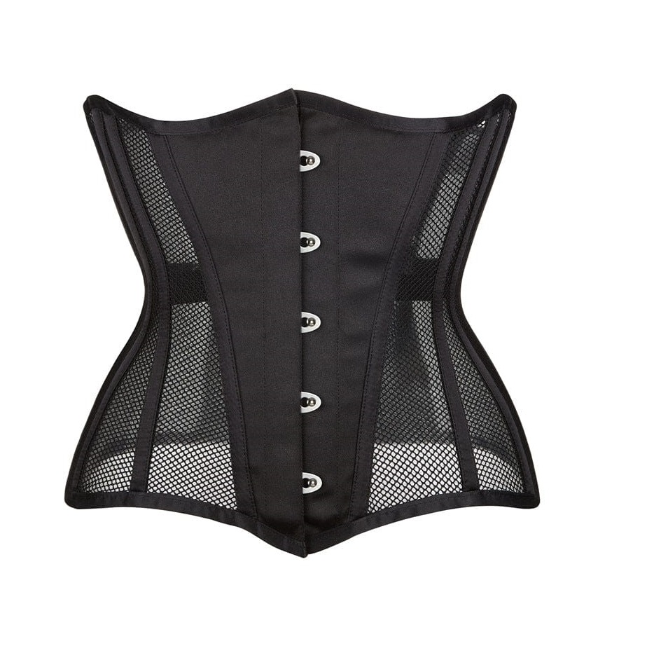 Underbust corset made of Mesh and lined with cotton and steel bones inside.