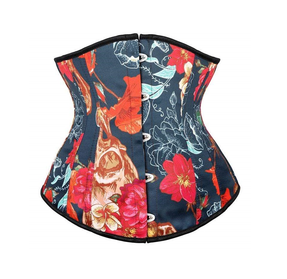 Underbust corset made of Floral Satin and lined with cotton and steel bones inside.