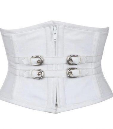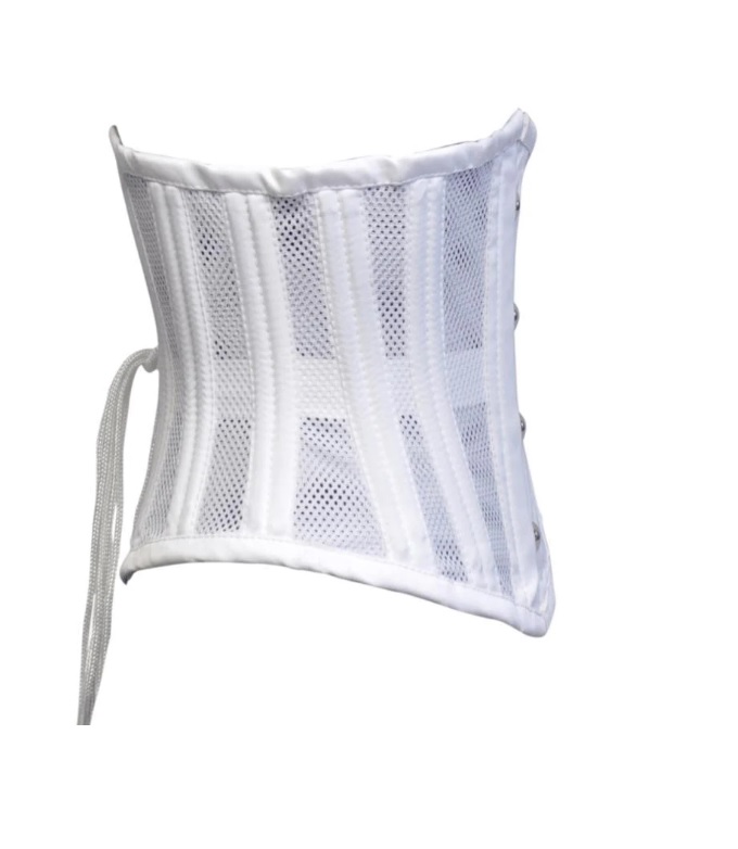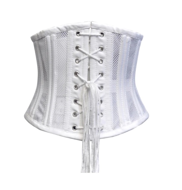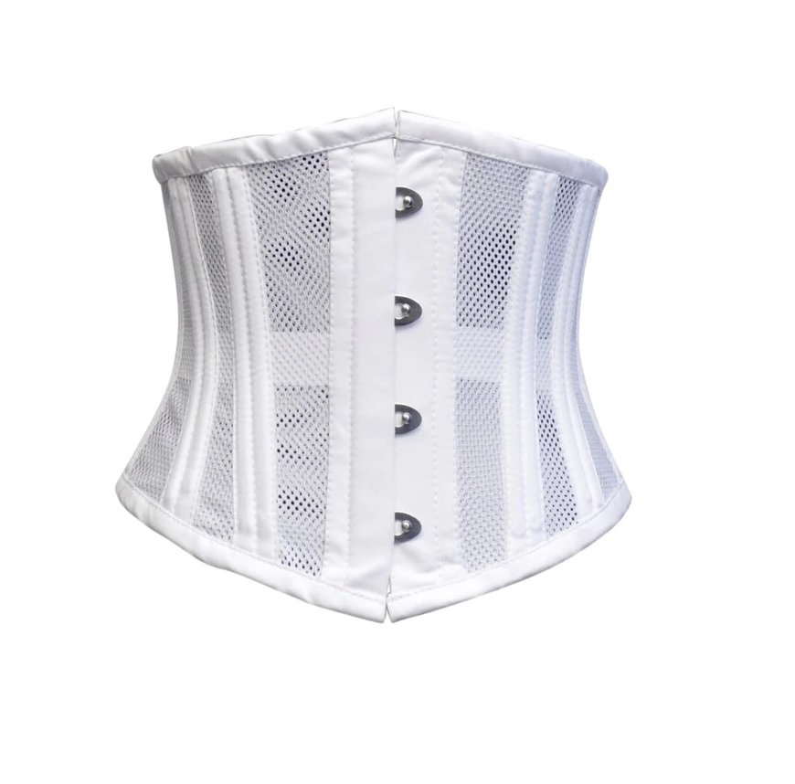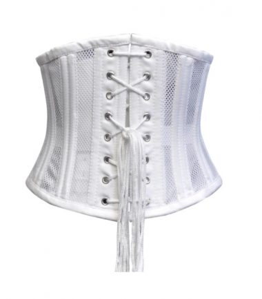 Waspie Corset made of white mesh and cotton boning channels and steel bones inside.