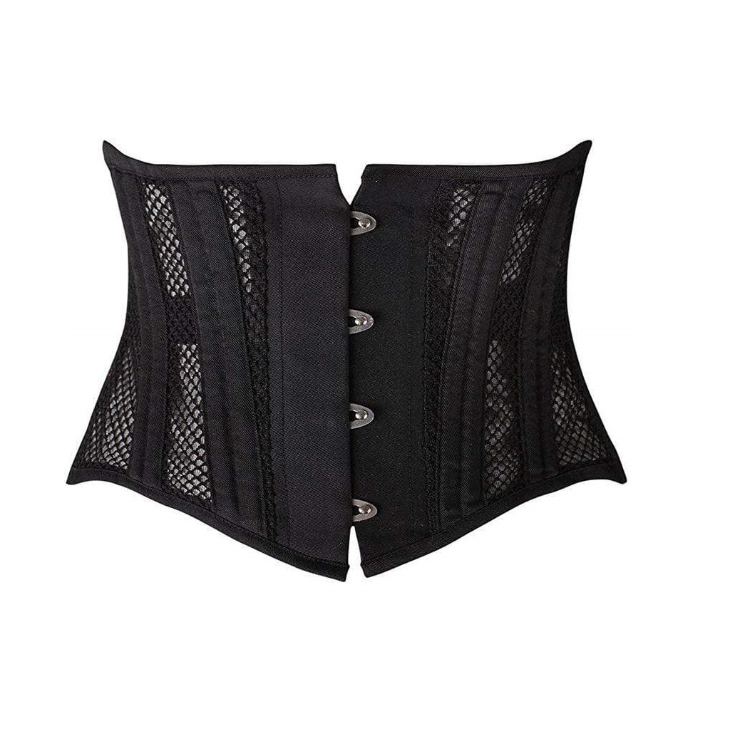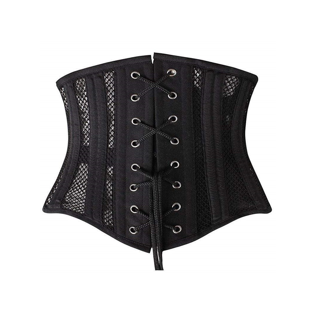 Waspie Corset made of Mesh with cotton Boning Channels and steel bones inside.